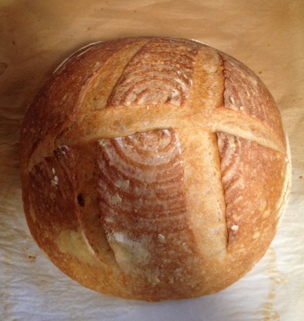 After collapsing back in bed around 2, reading a bit of Stephen King’s DOCTOR SLEEP (in my opinion one of his good ones), and passing out to endure some very odd llama-and-psychic-vampire dreams, I arose a few hours later feeling like it was going to be a good day. I added another 1,100 words to my count during the course of the day (and was surprised by a llama named Severus Snape playing Frisbee with Merry’s cowboy hat), all while baking a loaf of sourdough (pictured) and standing at my standing desk instead of sitting around.